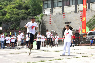 張家界高花燈亦稱高皇燈,是流行于永定沅古坪一帶富有民族特色的舞蹈。表演時(shí),12人至24人不等。配有鑼、鈸、嗩吶、鼓等樂(lè)器。每人手中拿一盞紙?jiān)鸁艋\,內(nèi)點(diǎn)蠟燭兩根,頂扎一木偶像,用五色紙剪成戲文故事如“八仙” 、“瓦崗寨”,“梁山英雄 ”之類。高花燈表演有一套程式,要求東起西落,進(jìn)一個(gè)“半邊月”,出一個(gè)“月團(tuán)圓”,舞個(gè)“太極圖”。亦可進(jìn)民房表演,叫“愿燈”,多為祝福、還愿或?yàn)槟臣蚁彩聹惾。打吆喝、打口哨則只能到戶外表演,叫“眾燈”,是讓大家看的。其形式又分民燈、戰(zhàn)燈。前者表演 古代先民的遷徙、繁衍、勞動(dòng)、生活;后者表演打仗破陣。隊(duì)形變化有“織籬笆”、滾柱頭”、“十八斗”、“螺螄轉(zhuǎn)頂”、“八卦陣”、“過(guò)天星”、“一字長(zhǎng)蛇”等二十余種。如破“象棋盤陣”,主人插三十二根香,擺成棋盤陣,表演時(shí),主人舉紅傘,玩燈者舉黑傘,從河道進(jìn),將眾“子”一一吃掉(即踩香),這是斗智的競(jìng)賽。只見燈火如流星般穿插舞蹈 ,旁邊配以龍燈互舞(配龍玩燈,是高花燈的主要特點(diǎn)之一),那激起的鑼鼓聲、吆喝聲、口哨聲,掀起有節(jié)奏的聲浪,熱烈而歡快。 張家界高花燈發(fā)祥于張家界市永定區(qū)沅古坪鎮(zhèn)等地區(qū),與沅古坪地區(qū)接壤的沅陵、桃源、慈利等周邊區(qū)縣也有少量玩高花燈的習(xí)慣。 高花燈的燈代表著光明幸福,12個(gè)燈表示12個(gè)月,月月平安無(wú)事。每年春節(jié),每個(gè)村寨都要操練一班高花燈,辭舊迎新。制作時(shí),藝人用竹篾和紙?jiān)?2或24個(gè)燈籠,在燈籠下加上一個(gè)長(zhǎng)柄燈托,并在燈籠上扎上五顏六色的“故事”,如“八仙”、“耿氏送子”等。夜晚,在燈籠里點(diǎn)上木油臘燭,一人舉一個(gè)燈籠,邊舞邊組成多種隊(duì)形。一眼望去,流光閃爍,尤如銀河戲舞。 張家界高花燈不但為本鄉(xiāng)本土的觀眾所喜愛,而且受到海內(nèi)外朋友及國(guó)際友人的高度贊賞。因?yàn)樗侵袊?guó)古老的民間舞蹈代表,它以自成體系的記譜方法,延繼著中國(guó)舞蹈的血脈,以其悠久的舞蹈歷史和多元文化特征,被舞蹈界認(rèn)為是“中國(guó)舞蹈歷史上的活化石”,極具學(xué)術(shù)研究?jī)r(jià)值和很高的審美價(jià)值。已列入全省第一批非物質(zhì)文化遺產(chǎn)保護(hù)名錄。 高花燈相傳起源于東漢章帝初年,時(shí)“ 中蠻”覃兒健在澧水中下游舉義反漢,與漢軍“戰(zhàn)于洪下”(相傳為今大庸紅土坪,待考),洪下“蠻人”用火 把跳舞為義軍吶喊助戰(zhàn),終因漢軍勢(shì)眾,覃兒健與義軍全部戰(zhàn)死(至今留下懸鼓坪、御甲埡、扎營(yíng)山、烽火臺(tái)等古戰(zhàn)場(chǎng)遺跡)。以后,當(dāng)?shù)匦U人每年都必在過(guò) 后年(從正月初一至元宵節(jié))打火把集會(huì)跳舞, 栽“ 陽(yáng)樁”(土話栽跟頭),表示對(duì)“洪下之戰(zhàn)”的紀(jì)念 。久而久之,火把進(jìn)化成燈籠和扎人物事故,表演也 有一定規(guī)矩。至今,這種舞蹈藝術(shù)還保留著古老、原始、粗獷、豪放、悲壯的特色。 |