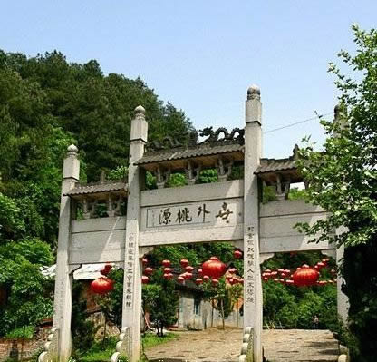 東漢建武二十四年(公元48年),伏特將軍馬援南征五溪"蠻",曾駐軍烏頭村,今桃花源附近尚留有他避暑的"馬援石室"以及他曾設(shè)帳蓬的"營(yíng)盤(pán)洲".他的將士曾患瘟疫,當(dāng)?shù)乩习傩斋I(xiàn)"三生湯"(即擂茶)為將士治愈瘟疫,因而桃花源這一帶,留下關(guān)于擂茶的傳說(shuō)和以擂茶待客人的習(xí)俗,相沿至今.就在此后兩年,即東漢建武帝二十六年,從臨沅縣中析置沅南縣,禁屬武陵郡,桃花源屬沅南縣三國(guó),兩晉,南北朝,桃花源均屬武陵郡沅南縣.就在這一歷史階段的晉代(公元前3世紀(jì)中葉至5世紀(jì)初),桃花源這處山水風(fēng)光地便開(kāi)始有了建筑.明陳洪謨編纂的<嘉靖常德府志>載:桃源觀,晉人建."道觀因建在桃源山上,故名"桃源山"即是桃花之源或者桃樹(shù)之源的山,是桃林茂密,桃花繽紛,美不勝收之處.南北朝宋初二年(公元421年),東晉大詩(shī)人陶淵明寫(xiě)下了千古杰作<桃花源詩(shī)并序>,他用浪漫主義的大手筆構(gòu)造了一個(gè)沒(méi)有紛爭(zhēng).沒(méi)有剝削,沒(méi)有壓迫豐衣足食,怡然自樂(lè)的理想王國(guó)--桃花源,反映了人民群從和平寧?kù)o,幸福美好生活的向往,也體現(xiàn)了人民群眾對(duì)黑暗社會(huì)的抗議.陶淵明從小受儒家"大同世界"的理想,又有道家"小民寡民"的思想的影子.陶淵明繼承了楚文化和屈原的"楚風(fēng)",<桃花源詩(shī)并序>問(wèn)世之后,石破天機(jī),使桃花源聲名大起,現(xiàn)實(shí)中的桃源山,桃源觀,桃花山,桃川宮(即桃源山濱臨之沅江一帶)等名勝景物隨之暇邇聞名.