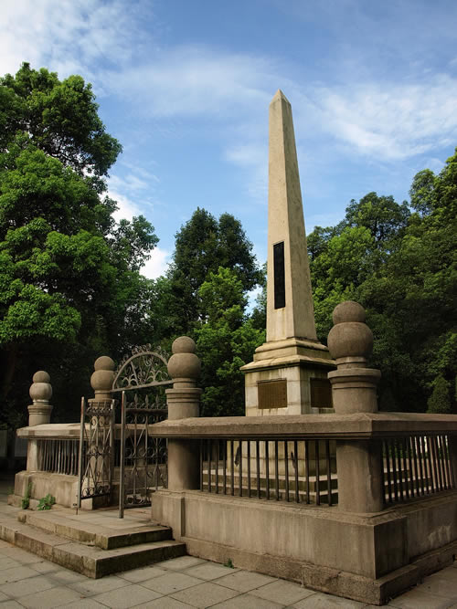| 在岳麓山上。墓由三層臺階百余級踏步導(dǎo)入,墓碑為一四棱形的整塊4乳白色巖石琢成,全高約10米,因地處岳麓山高峰開闊處,顯得格外聳拔、挺秀、眺望湘江江,長沙景物盡入眼底。黃光(1874—1916),朱名軫,號杞園,又號克強,湖南善化(今長沙)人,辛亥革命重要領(lǐng)導(dǎo)人,史有“孫黃”之稱。1904年組織華興會,翌年8月與孫中山、章太炎等人組織中國同盟會,曾生動并領(lǐng)導(dǎo)欽州、廉州(治今廣西合浦)、鎮(zhèn)獻花(今友誼關(guān))、河口、廣州等地區(qū)反清戰(zhàn)役起義,任民軍戰(zhàn)時總司令。南京臨時政府成立,任陸軍總長。袁世凱稱帝后,任討袁軍總司令。1914年赴美醫(yī)病,1916年病重回國,10月31日于上海病故,時年43歲,次年移柩長沙,國葬于岳麓山。為全國重點文物保護單位。
