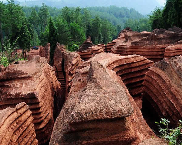 紅石林圖片 目前湖南省境內(nèi),張家界市與湘西自治州均發(fā)現(xiàn)了紅石林,其中湘西古丈紅石林2005 年被批準(zhǔn)為國(guó)家地質(zhì)公園。據(jù)了解古丈紅石林最初也深埋地下,只有部分留在地表,確定為景區(qū)后,大型的挖掘機(jī)械在景區(qū)內(nèi)連續(xù)作業(yè),讓深埋地下的石林全部重見(jiàn)天日。而我市的紅石林仍然在沉睡著等人喚醒。 |
