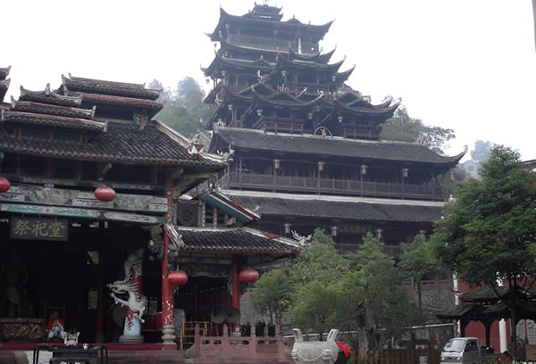 土司城 土司制度初建于五代十國時(shí)期,到了明朝己非常成熟了,土司王有無上的權(quán)威,在湘西有三大土司王分別是桑植土司向氏、永順土司王彭氏、慈利土司王張氏,其中又以永順溪州土司彭氏實(shí)力最強(qiáng)。其它土司王都為自己修建一座土司城,唯有彭氏分別在永定、永順修建了二座土司城。在永定的土司城內(nèi),彭氏為顯示其地位,修建了湘西最高的一座高達(dá) 48米,共12層的吊腳樓,整棟樓竟無一根鐵釘,堪稱土家吊腳樓建筑史上的奇跡,此樓于2002年9月被評為最高吊腳樓,榮獲世界吉尼斯之最,與此同時(shí)土司城內(nèi)舉辦一千人參加表演的毛古斯舞蹈活動(dòng)獲得圓滿成功,同時(shí)獲得世界吉尼斯之最。進(jìn)入土司城,首先看到土司城迎賓儀式,土家漢子迎賓鼓,吹牛角、放沖,土家姑娘攔門歌,敬攔門酒,進(jìn)入城內(nèi),在祭祀堂前舉行百人土家大祭祖活動(dòng),男女老少唱擺手歌、跳擺手舞,登世界最高的吊腳樓九重天,參觀土家族千百年來文化展示。到土家山寨,聽土家歌,賞土家族最有代表風(fēng)俗哭嫁,三棒鼓,花燈等民俗表演。