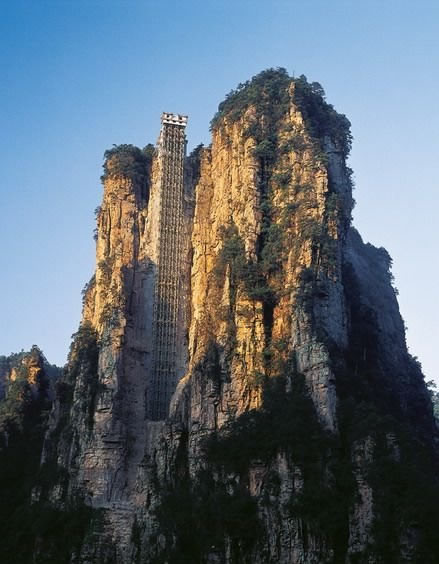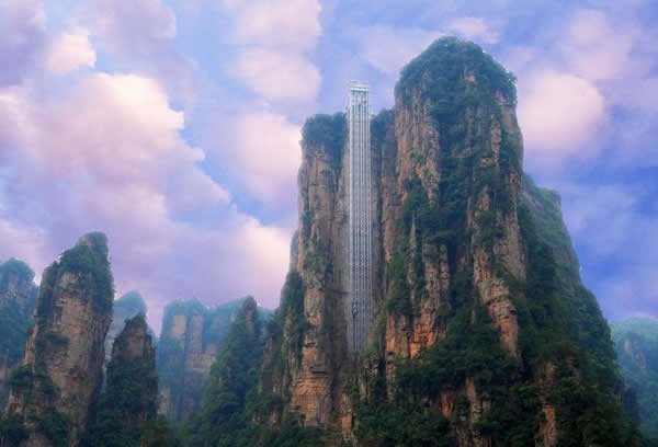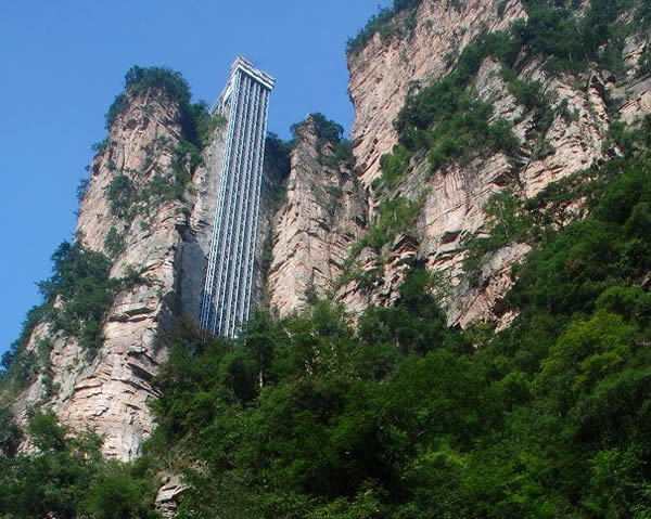 | 百龍?zhí)焯菀挥谑澜缱匀贿z產(chǎn)張家界武陵源風(fēng)景名勝區(qū),1999年9月動(dòng)工,2002年4月投入營(yíng)運(yùn),電梯的主要設(shè)備由德國(guó)知名電梯公司研究生產(chǎn),耗資人民幣1.8億元,被譽(yù)為“世界上最高、運(yùn)行速度最快、載重量最大的電梯”,也因此被載入吉尼斯世界紀(jì)錄。