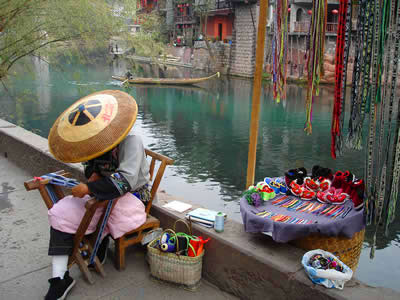 刺繡 刺繡。是土家姑娘在直紋平布上,按照布紋的經(jīng)緯和預(yù)先繪畫的花樣與底色不同的絲線繡成圖案。舊時姑娘們穿的繡花衣服,繡有服飾花邊、胸花、帽花,此外繡花枕頭、繡花荷包等也是精巧的手工工藝品。土家刺繡在配色上有自己的講究與習慣,一般選用青、藍、大紅等深色布料作底布,用淺色繡線制作圖案,或者相反,兩種用法的結(jié)果使繡品顯得質(zhì)樸逼真,色澤鮮艷,對比強烈。傳統(tǒng)圖案有“花開富貴”、“龍鳳呈祥”、“鴛鴦戲水”、“喜鵲鬧梅”、“松鶴同壽”等,分室內(nèi)、衣著、工具、行李裝飾等多種種類。在景區(qū),土家婦女邊繡邊賣的精美鞋墊,深受海內(nèi)外游客喜愛。