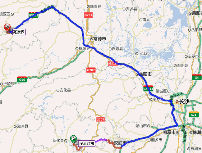 冷水江去張家界自駕車線路圖