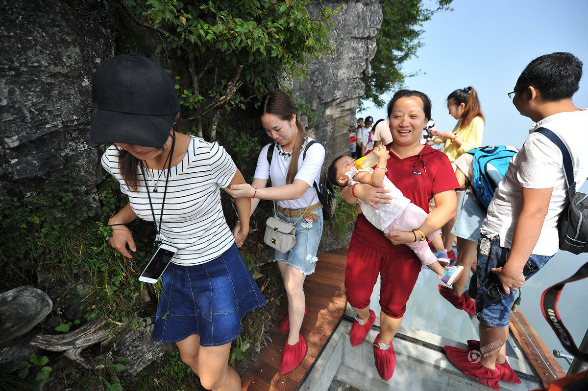 8月1日,天門(mén)山景區(qū)第三條玻璃棧道——盤(pán)龍崖玻璃棧道開(kāi)通迎客。玻璃棧道全長(zhǎng)100米、寬1.6米,因站在玻璃棧道上能俯瞰天門(mén)山99道彎盤(pán)山公路而得名“盤(pán)龍崖玻璃棧道”。該玻璃棧道以其絕壁凌空的恢弘氣勢(shì)和令人頭暈?zāi)垦5囊曈X(jué)感受備受游客青睞。