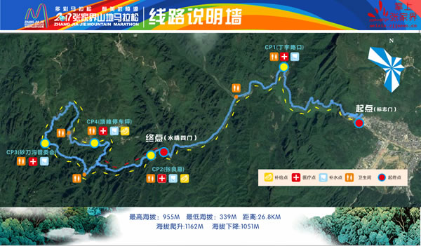 據(jù)了解,本屆山地馬拉松活動分為迷你馬(全程11.8千米)和半馬(全程26.8千米),參與報名612人,其中法國、加拿大、埃塞爾比亞等國外選手25人。5日早上9:00,選手們將從張家界國家森林公園吳家峪門票站出發(fā),途徑十里畫廊、水繞四門金鞭溪、迷魂臺等核心景點,最高海拔近千米,累計爬升1162米,累計下降1051米,可謂山地馬拉松的絕佳路線。