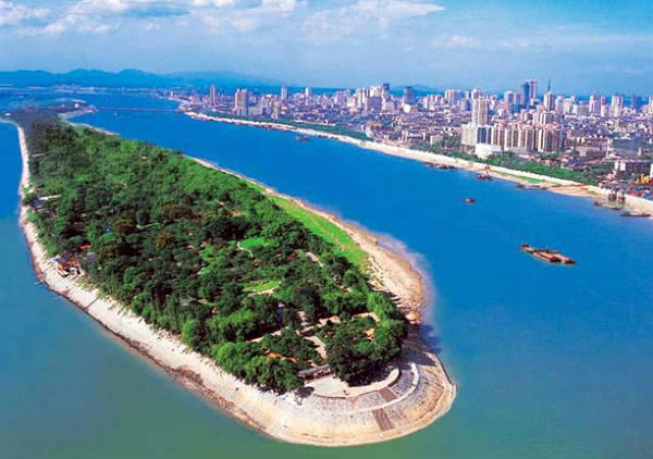 【橘子洲】:位于湘江長沙段江心,是世界上最大的內(nèi)陸洲,橘子洲介名山城市間,浮裊裊凌波上,被譽為“中國第一洲”,橘子洲以成片桔園為綠化主體,雜檀名貴花木,風景秀麗,環(huán)境清幽,融綠化、美化、香化、凈化為一體,觀山、觀水、觀桔、觀花各有千秋。